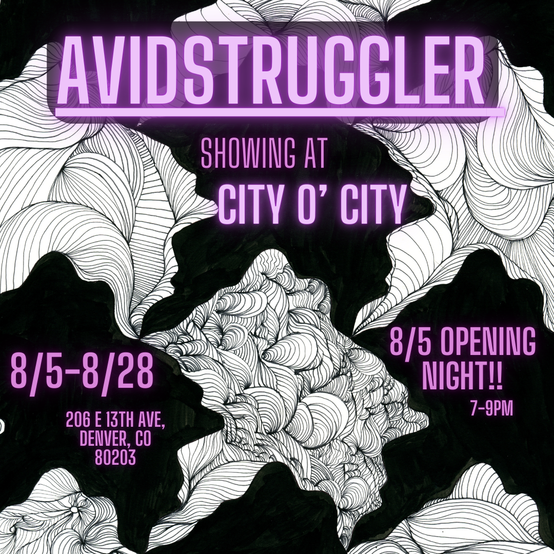 Come check out the talented artists of Lavender Art Collective and support queer/ disabled artists of Denver! You can also enjoy the delicious drinks and food of Roostercat coffee house!